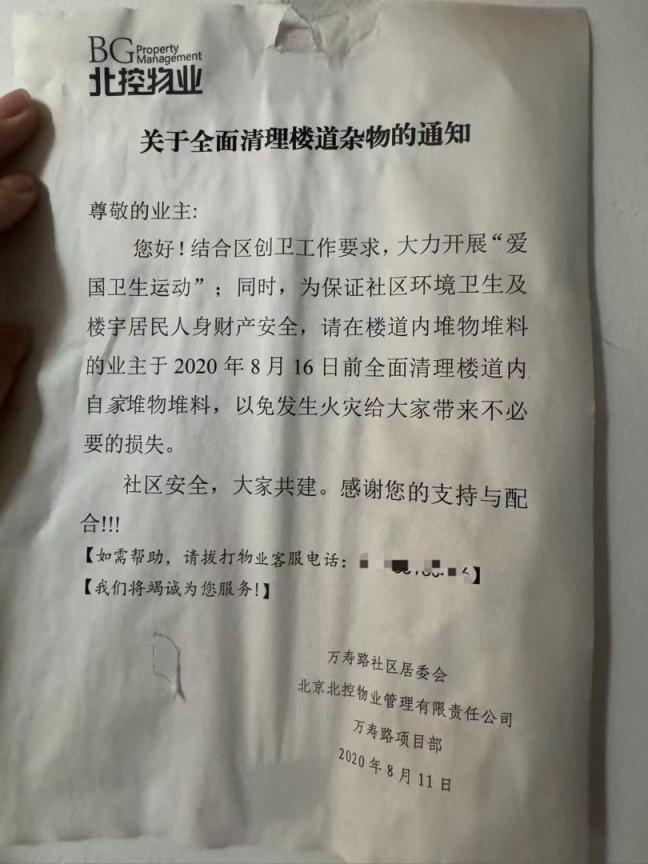 大件厂小区8号楼的清理通知