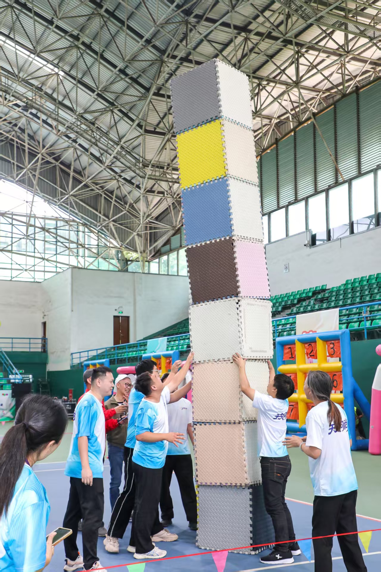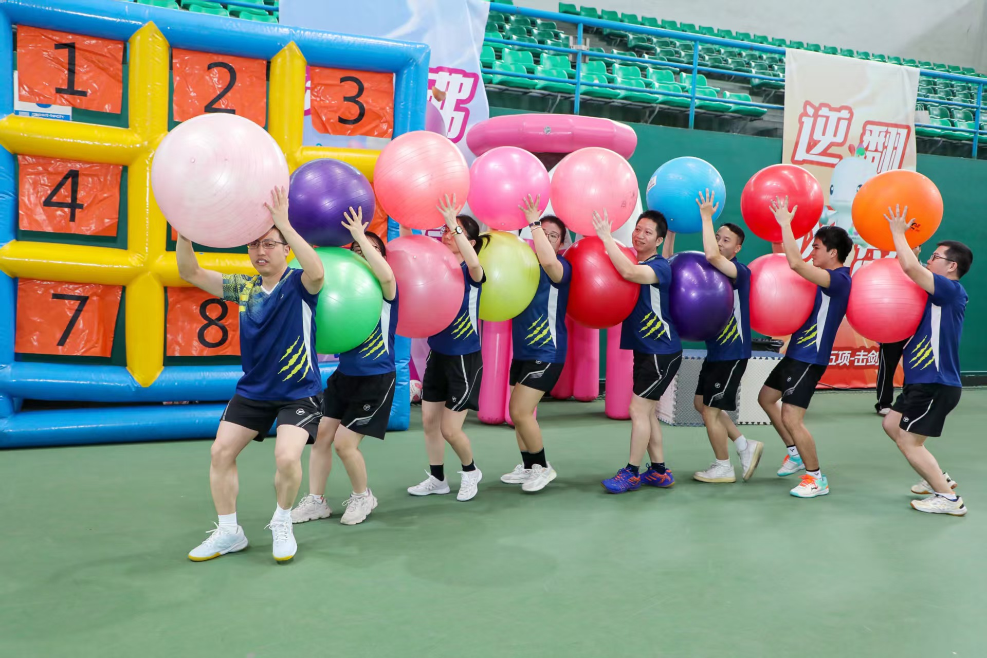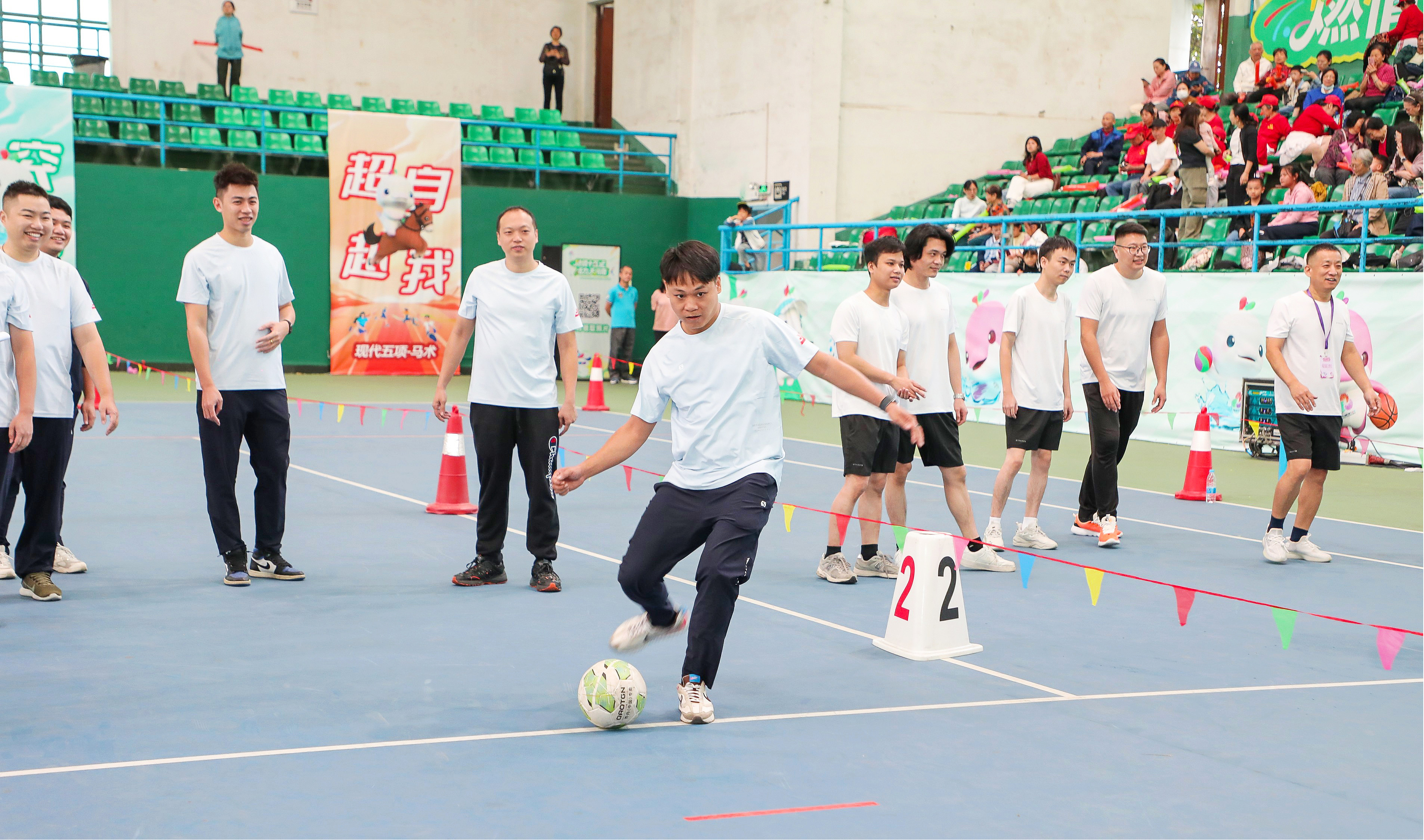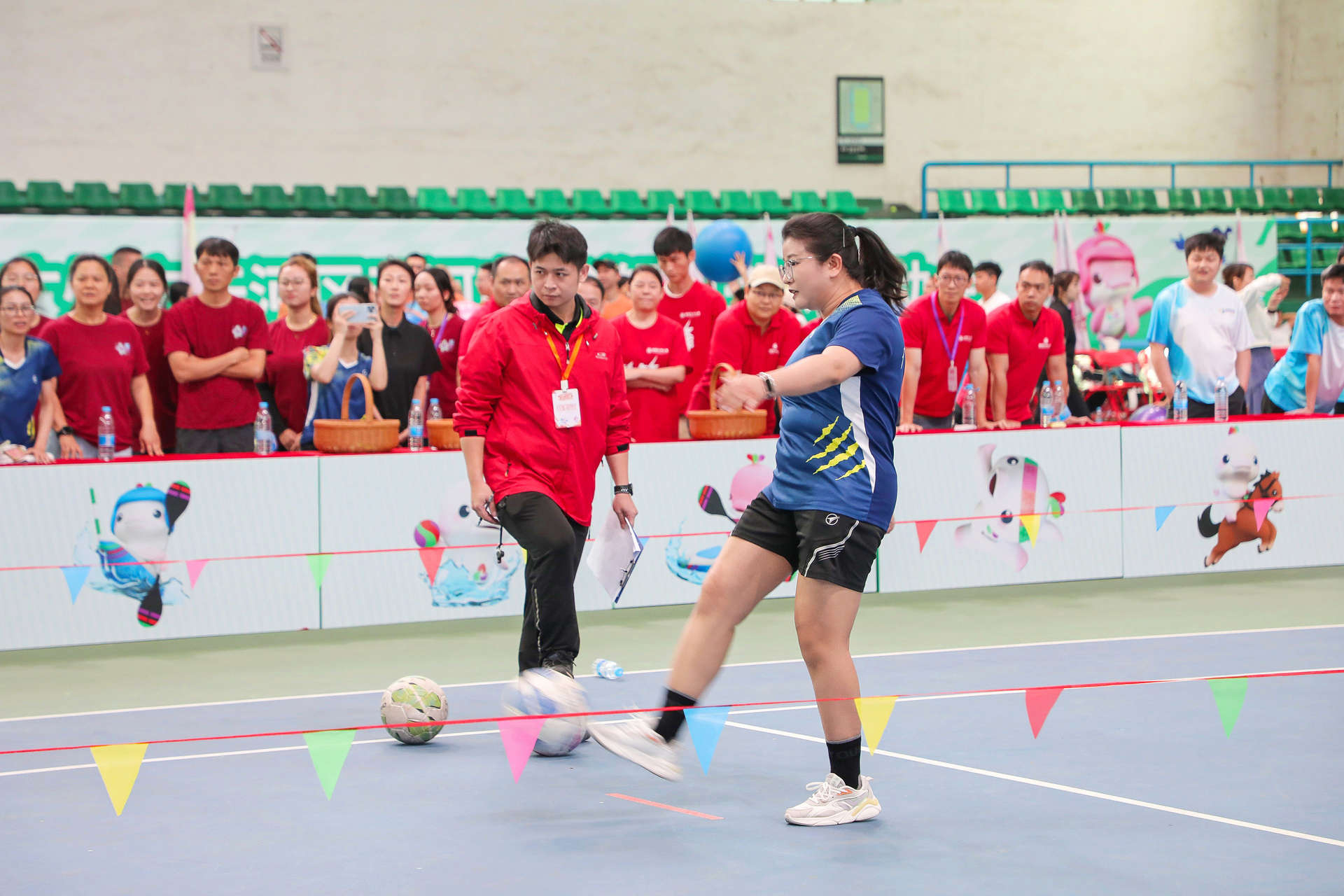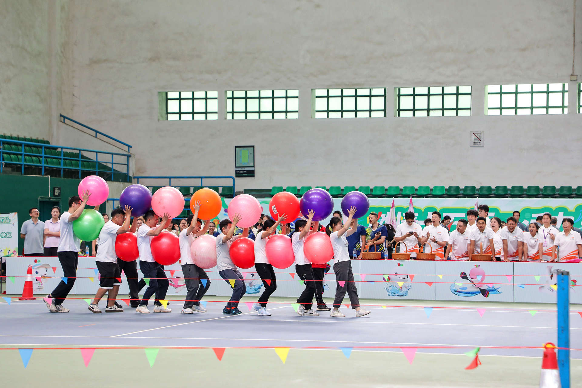 赛场上,职工们暂时放下工作的压力,全心投入比赛的快乐。有人在“点球大战”中一脚定乾坤,引来阵阵喝彩;有人在“步步为营”中稳扎稳打,展现耐心与智慧;更有队伍在“超级NBA”中默契传球、协作进攻,彰显团队力量。赛场边,啦啦队的加油声、欢笑声此起彼伏,整个网球馆化作一片欢乐的海洋。
